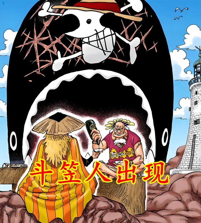 城堡中的路飞等人,听到巨人守卫说,是红发袭击了他们,路飞很难以置信。在漫画631话扉页中,和库洛卡斯喝酒的斗笠人,在路飞说罗杰海贼团是香克斯的家人时,出现了。这个人很大可能是罗杰海贼团的人。